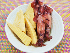 いかと竹の子を甘めの醤油ベースのたれで煮付けました。